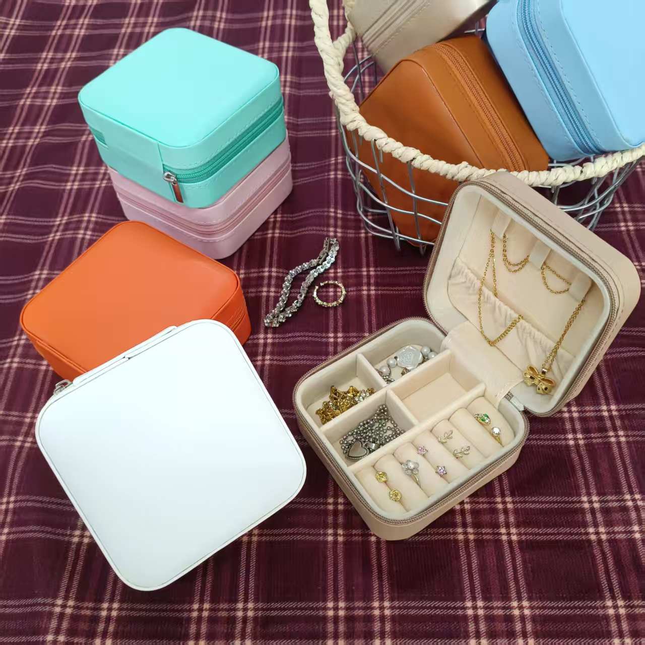 Macaron Color Sweet Jewelry Box Ring Pendant Earrings Multi-Grids Storage Box B&B Portable Zipper Jewelry Bag