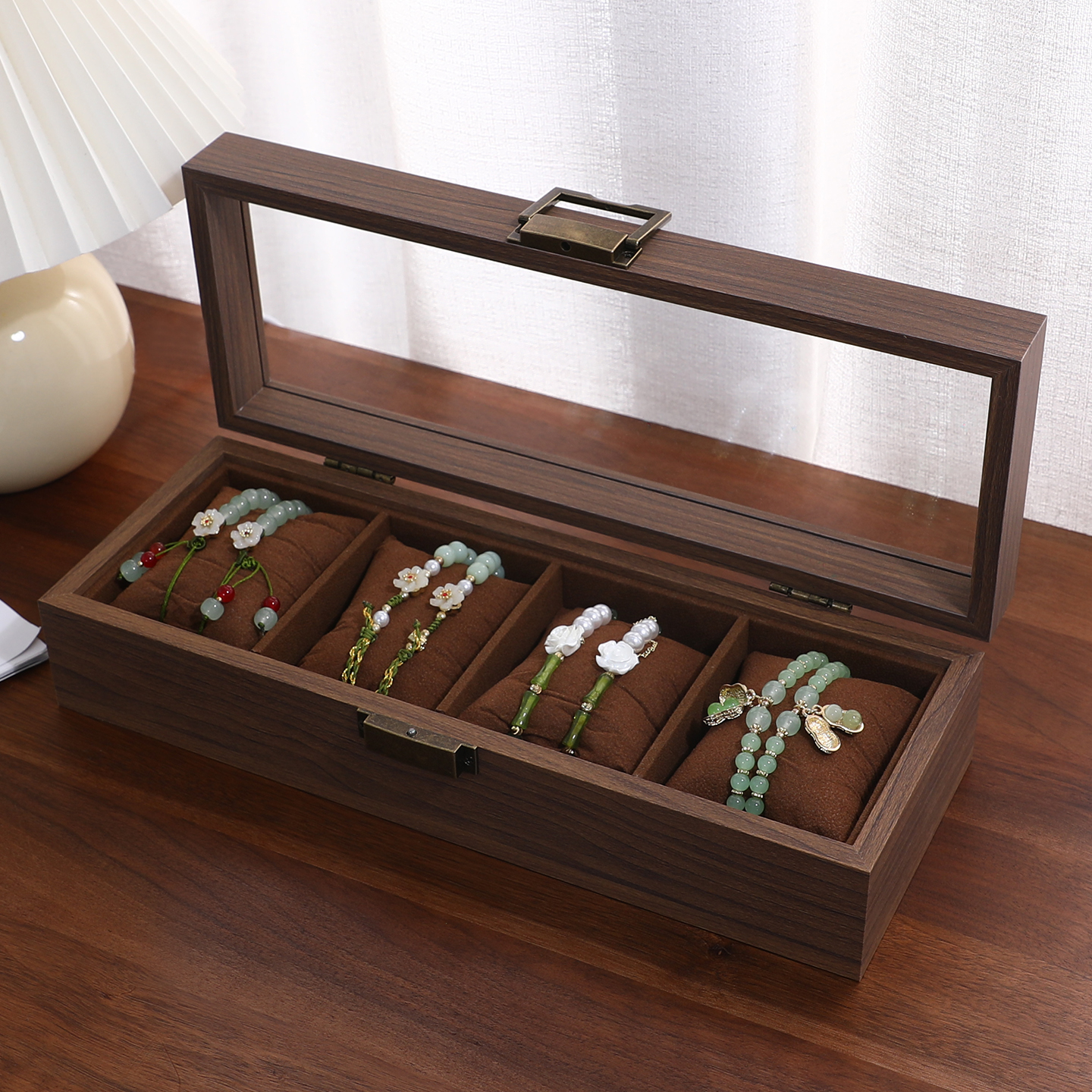 Black Walnut Solid Wood Black Chocolate Jewelry Box Necklace Ear Jewelry Earrings High-End Storage Box Bracelet Portable Storage Box