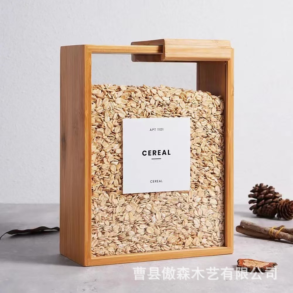 Creative Bamboo Grain Storage Box Kitchen Wooden Sliding Cereal Dispenser Household Wooden Rice Storage Box