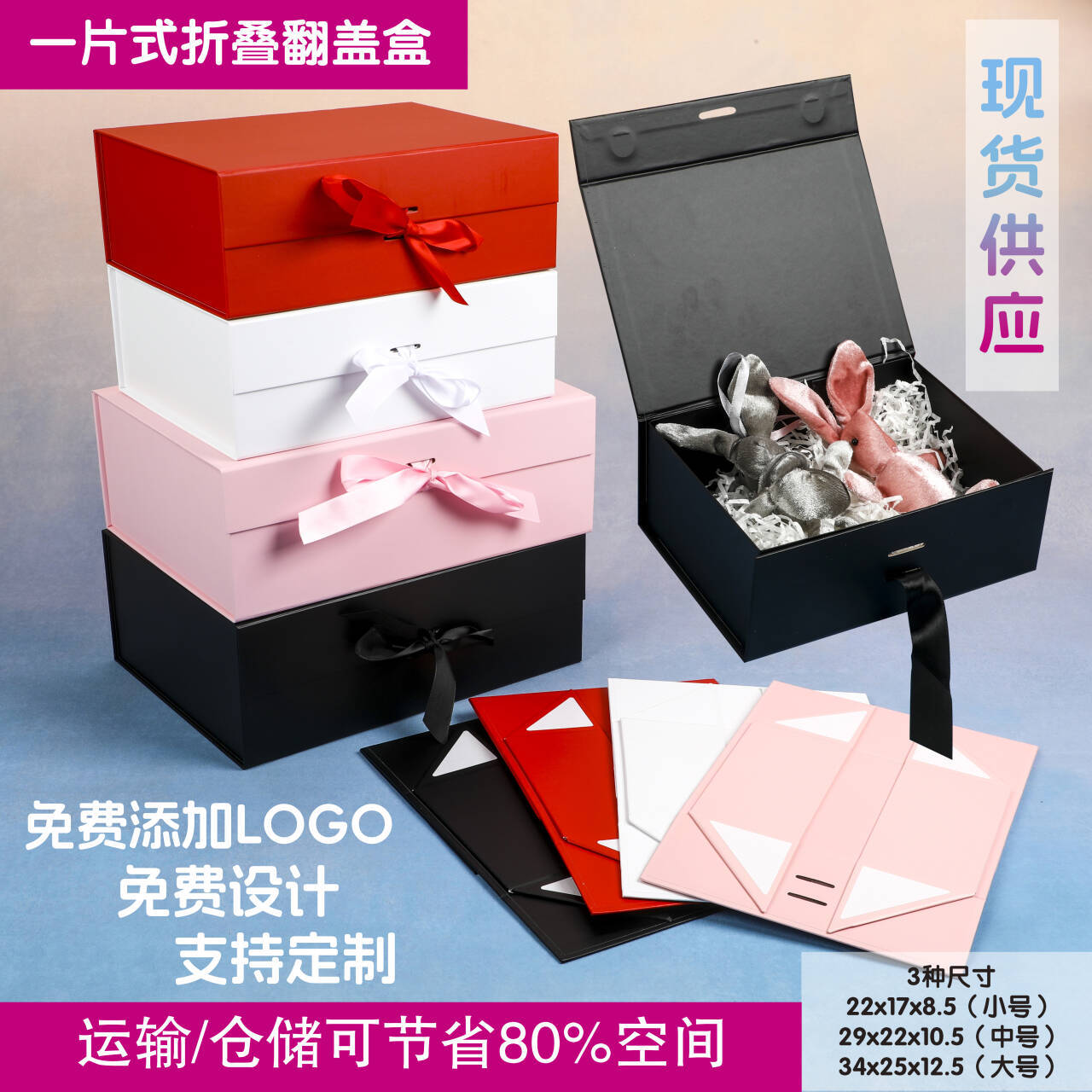 Ready-Made Birthday Gift Packaging Box with Pink Bow, Customized Christmas Gift Box, One-Piece Flip-Top Gift Box