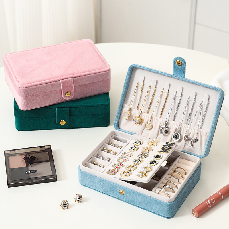 Cross-Border New Wholesale Velvet Jewelry Box Double-Layer High-End High-End Antioxidant Jewelry Storage Box Jewelry Storage Box