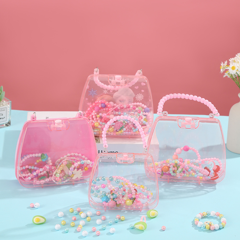Transparent portable storage box creative children's jewelry hair accessories packaging box DIY cosmetic box Children's handbag wholesale
