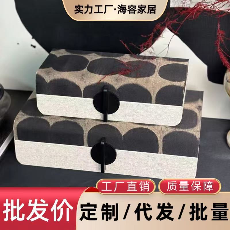 Modern New Chinese Style Wabi-Sabi Style Leather Round Buckle Decorative Box Ornaments Model Room Bedroom Desktop Jewelry Storage Box