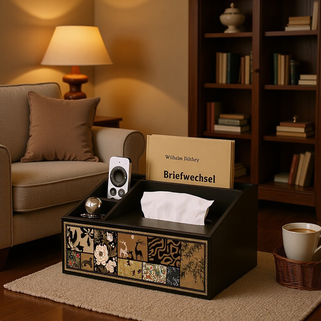 Medieval Style Remote Control Tissue Box Coffee Table Storage Box Living Room Bedroom Desktop Storage Integrated Multi-Functional Tissue Box