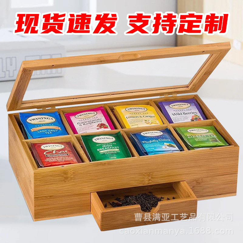 Cross-border Direct Desktop Tea Bag Storage Box Wooden Tea Bag Storage Box Removable Multi-compartment Drawer Inner Storage Box