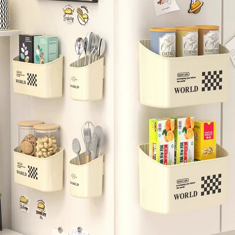 Magnetic Refrigerator Storage Rack Wall-Mounted Punch-Free Dual-Purpose Side Rack Plastic Wrap Storage Kitchen Supplies Storage Box