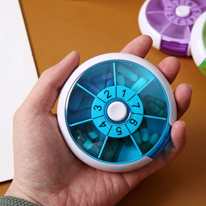 Portable Round Seven-Compartment Rotating Pill Box for Seven Days a Week, Portable Storage Mini Medicine Box, Rice Bead Box Wholesale