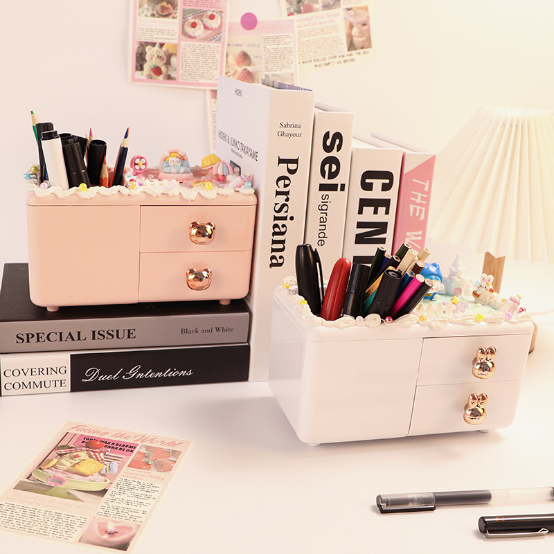 DIY Pen Holder Plastic Storage Box Dust-Proof Drawer-Type Ins Desk Compartmentalized Export Layered Storage