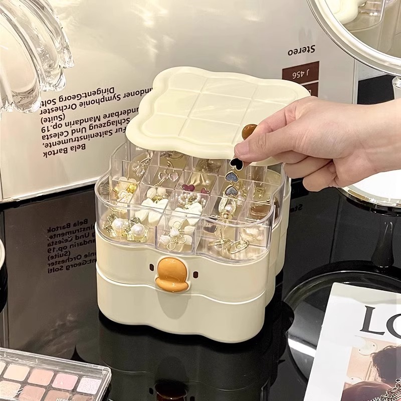 Rotating Jewelry Box Fine Hair Accessories Large Capacity Dustproof Box Ring Necklace Earrings Earrings Cute Storage Box