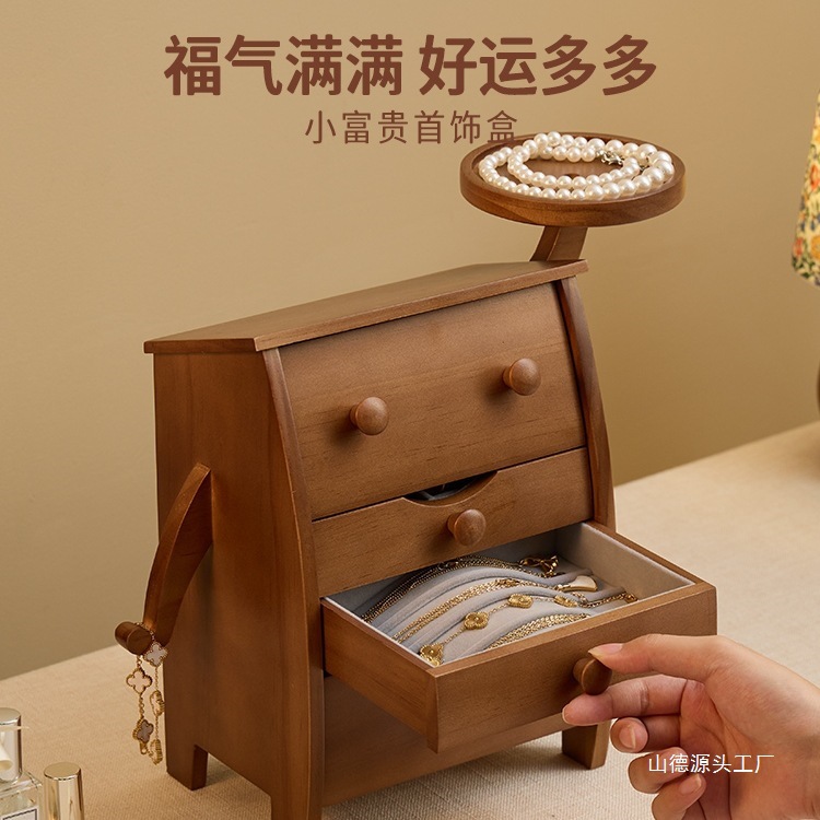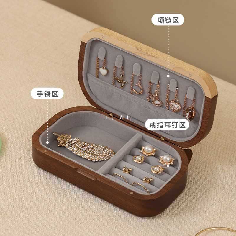 Van Han Solid Wood Cute Jewelry Box Portable Small Jewelry Box Ring Necklace Earrings Jewelry Storage Box