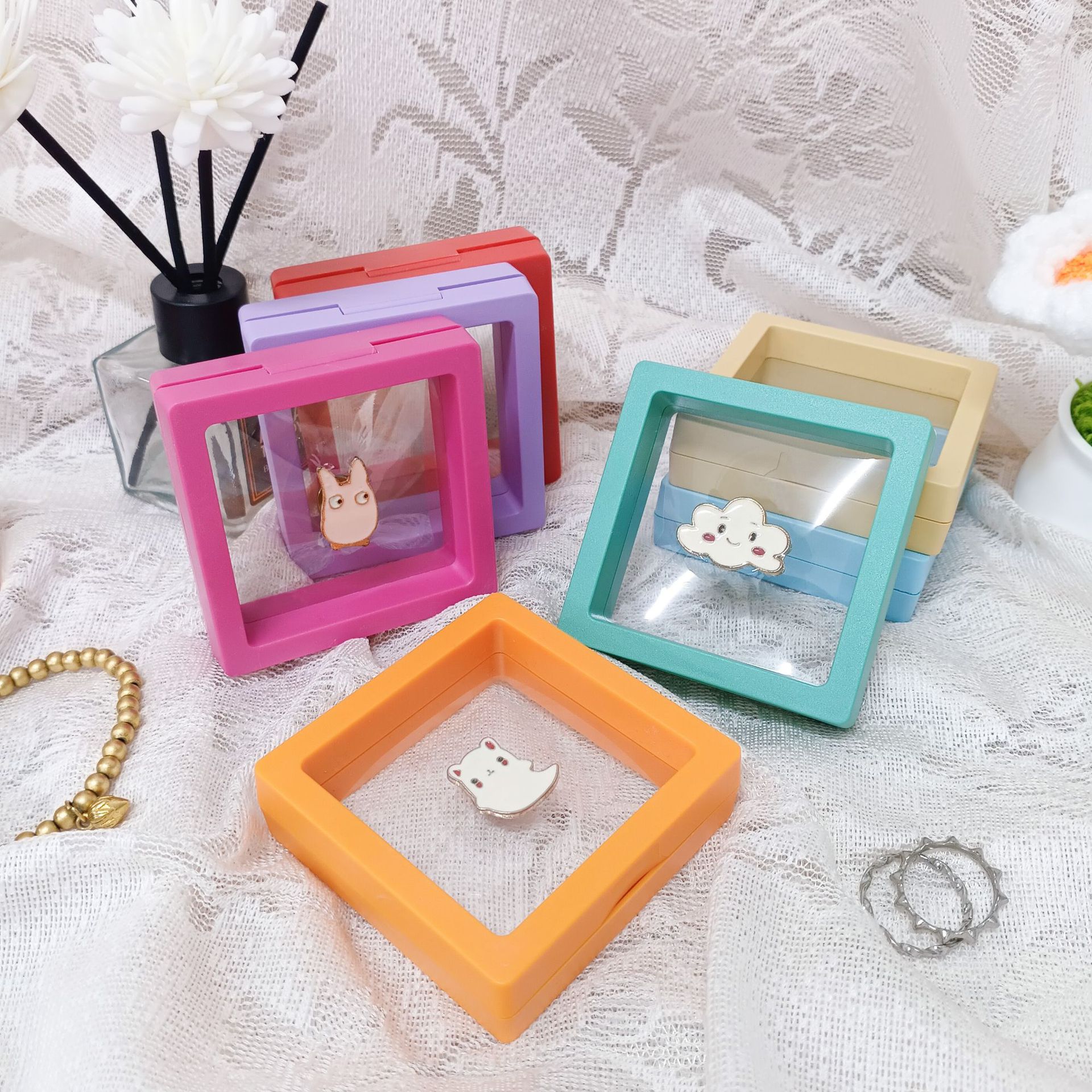 Mini Transparent Jewelry Suspension Box School Badge Brooch Finger Dust-Proof Storage Box Student Cute Small Gift Packaging Box