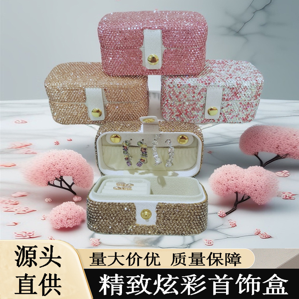 Diamond-encrusted Cute Rectangular Small Jewelry Storage Box Portable Travel Earrings Earrings Ring Lipstick Jewelry Jewelry Box
