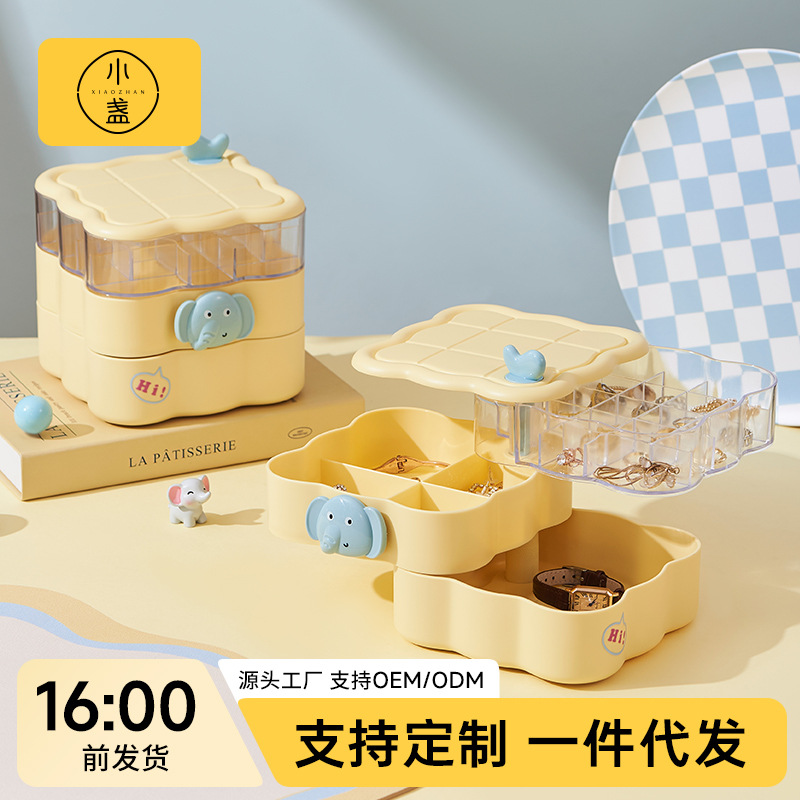 Hair Accessories Finishing Box with Lid Ring Rotating Desktop Storage Box Large Capacity Jewelry Box Cartoon Necklace Layered Cute
