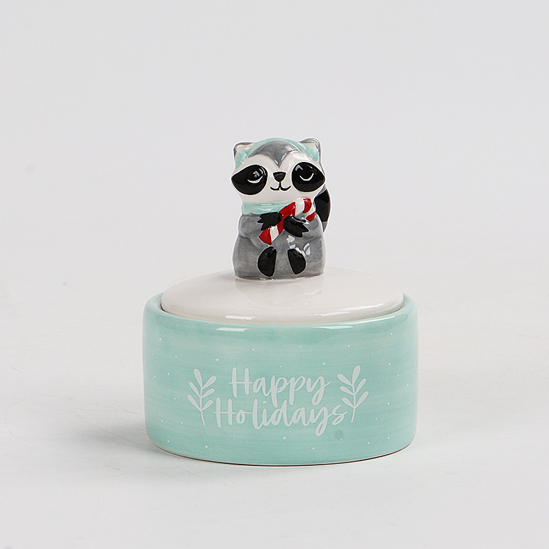 Ceramic Christmas Raccoon Series Jewelry Box Ceramic Jewelry Box Manufacturer Direct Sales Jewelry Storage Box Ornaments