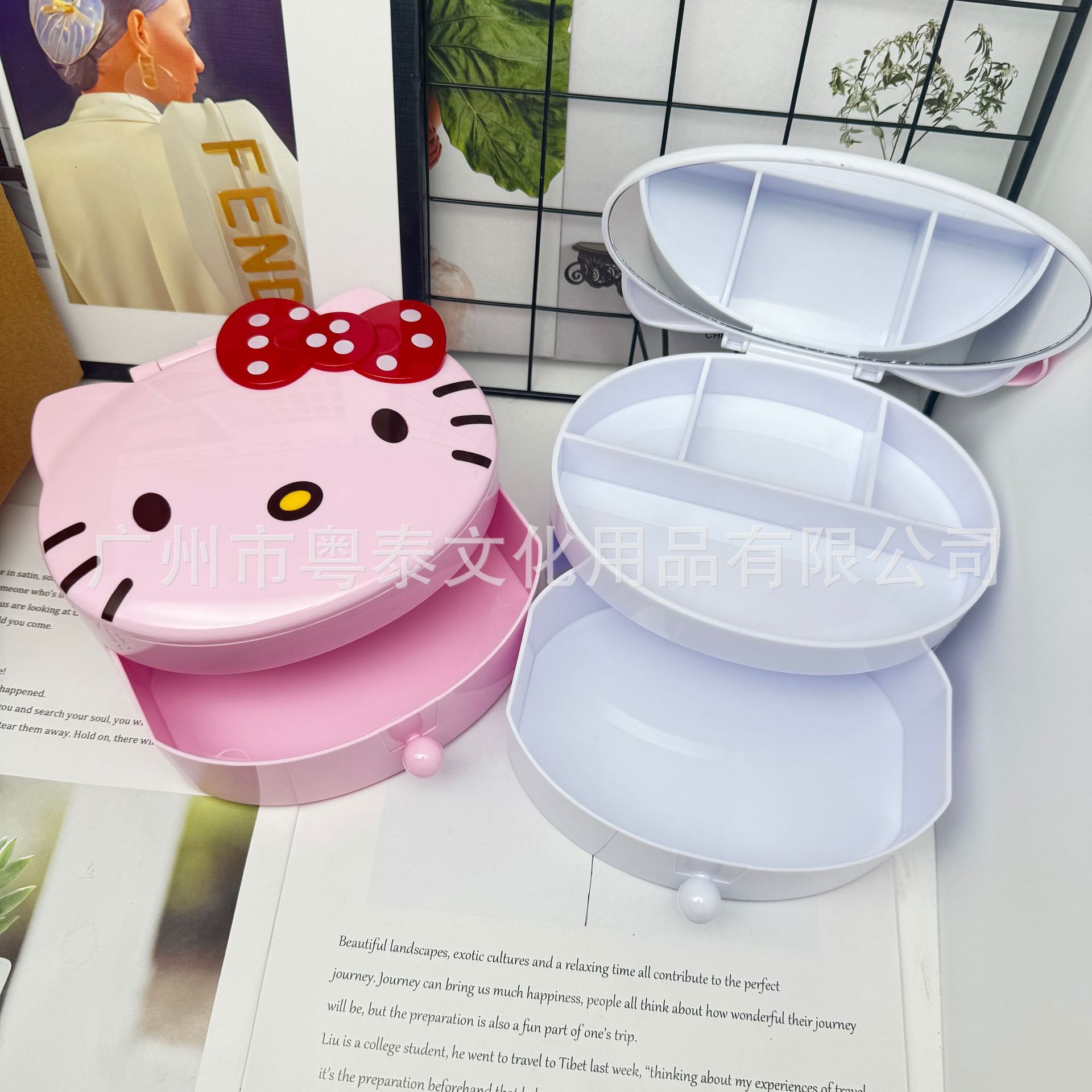 Japanese Style Pink White Kt Cat Cartoon Cute Jewelry Box with Mirror Compartment Storage Box Kidsren's Jewelry Storage Box