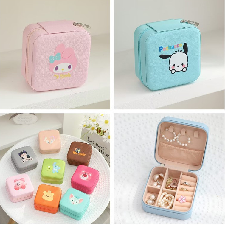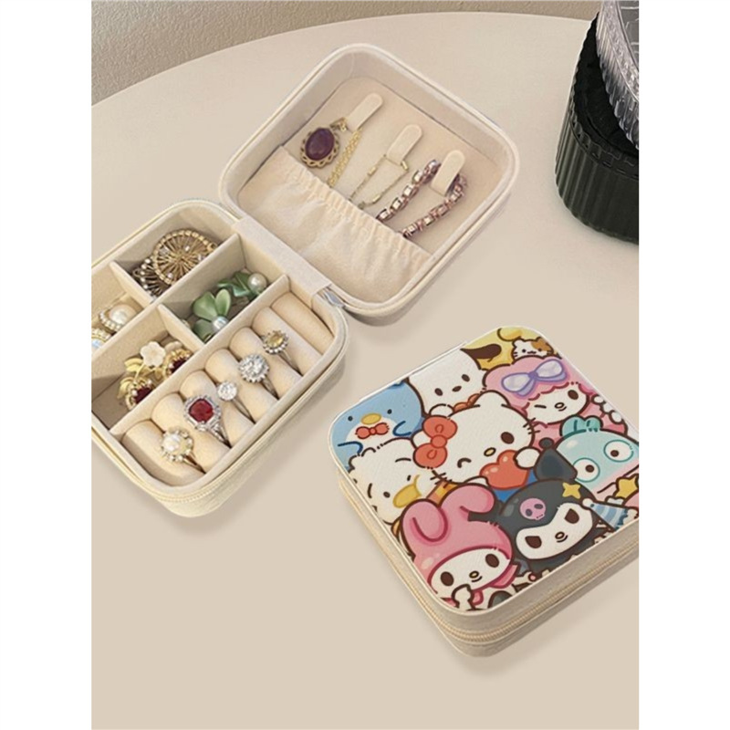 Cross-Border New Cute Cartoon Sanrio Jewelry Storage Box Girl Ins Necklace Ring Jewelry Gift Box Leather