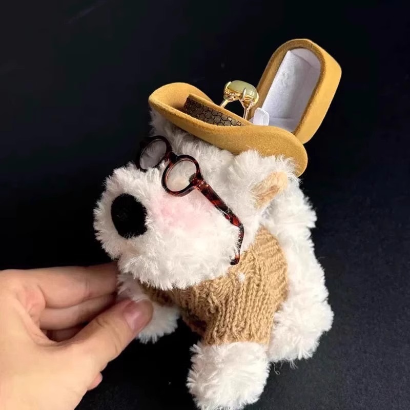 [Puppy Ring Box] Creative Literary Style West Highland Puppy Plush Doll Cute Cartoon Doll Jewelry Box