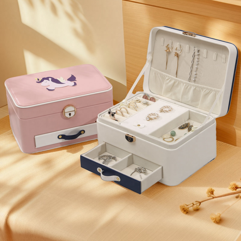 Children's Jewelry Box Girl Princess Jewelry Storage Box Large Capacity Portable Toy Box Back-To-School Season Birthday Gift