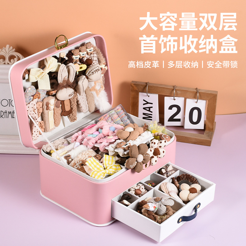 Cute Jewelry Storage Box Multi-layer Large Capacity Desktop Children's Hair Accessories Decorated Storage Box Transparent Portable Storage Box