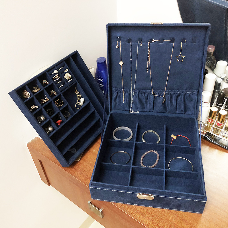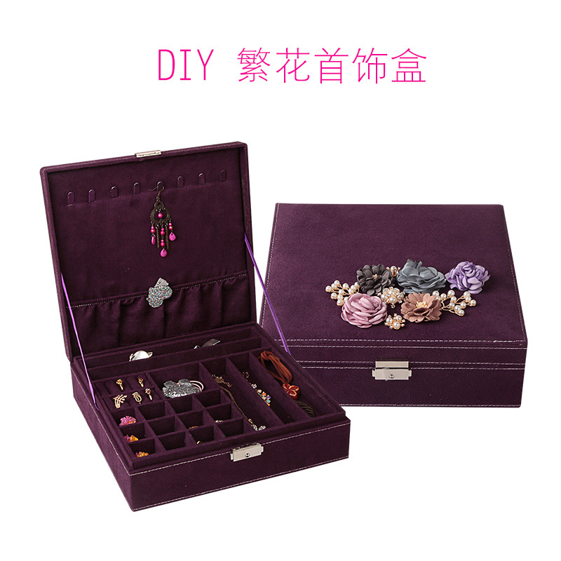 Velvet rectangular multi-layer jewelry ring earring box large capacity jewelry storage box birthday gift female cute student