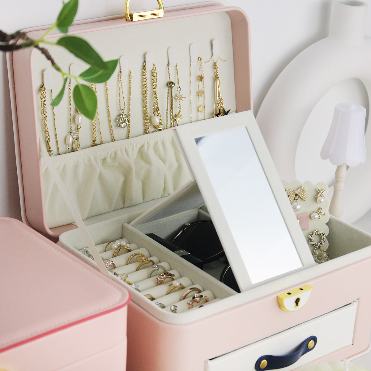 Ring Box Women's Jewelry Box 5 New High-End Exquisite Anti-Oxidation Large-Capacity Earrings Necklace Box