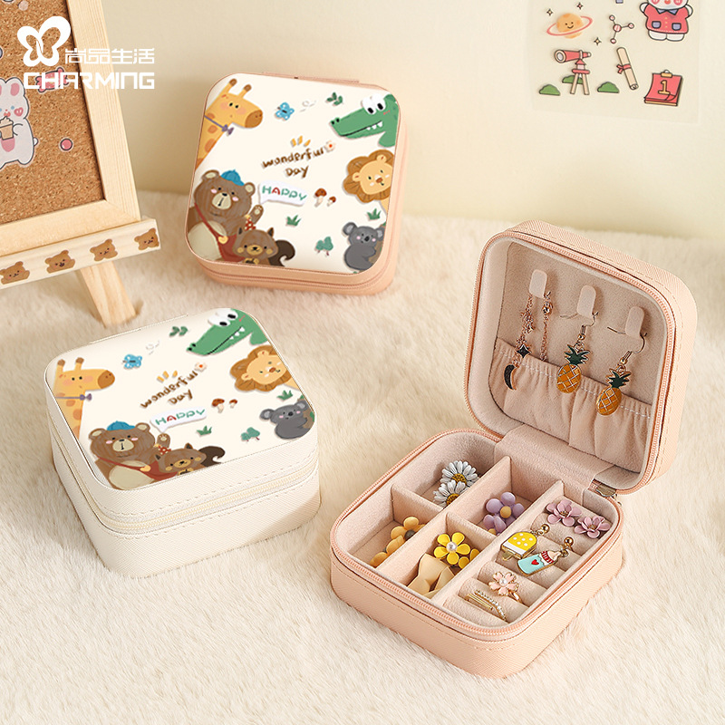 Cross-Border Direct Supply of Cute, Compact and Portable Jewelry Boxes with Digital Printed Cartoon Images for Jewelry Storage, Amazon Jewelry Boxes