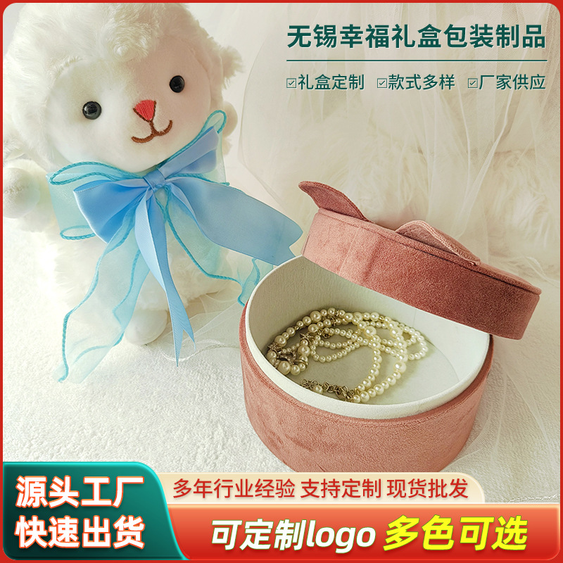 Manufacturer Supplies Suede Round Matchinging Necklace Earrings, Cute Appearance, Cute Cat Jewelry Storage Box
