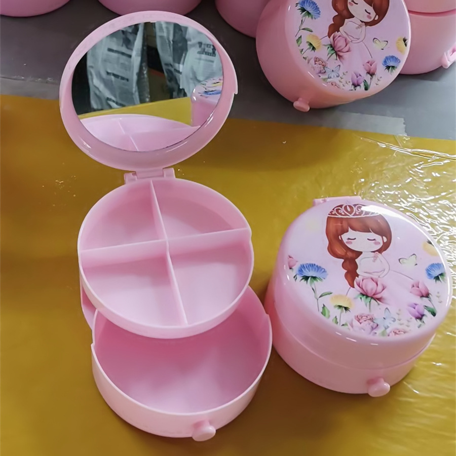 Cartoon Double-Layer Drawer Jewelry Box Round Frozen Cute Cat Storage Box Girls Makeup Box Hair Accessories