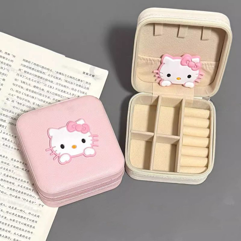 KT Cat Jewelry Box Portable Cute Earrings Storage Box Earrings Mini Exquisite Travel Ring Necklace Jewelry Box