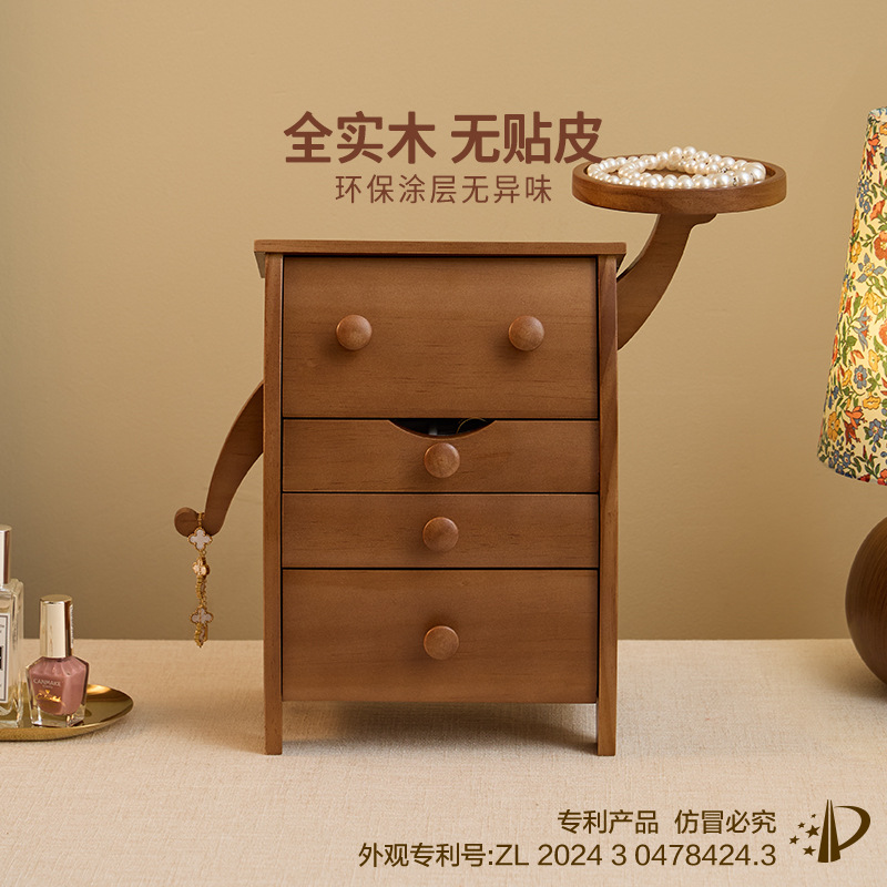 Creative and Cute 2025 New Model Solid Wood Jewelry Box with Large Capacity, Four Layers, Suitable for Gifting, Small Fortune and Prosperity, Wedding Gift