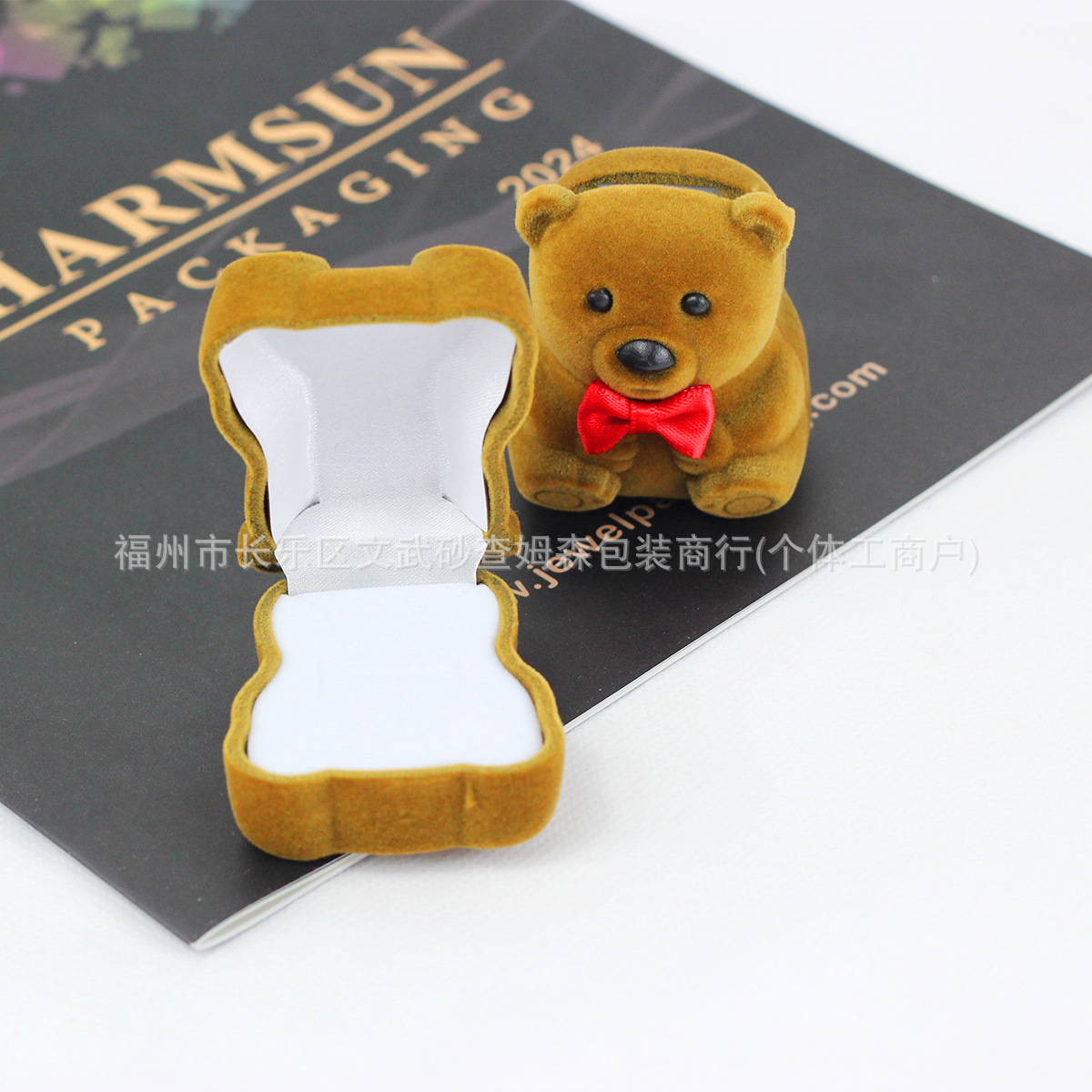Spot Cross-Border Hot Selling Cute Velvet Bear Flocked Jewelry Box Cartoon Export