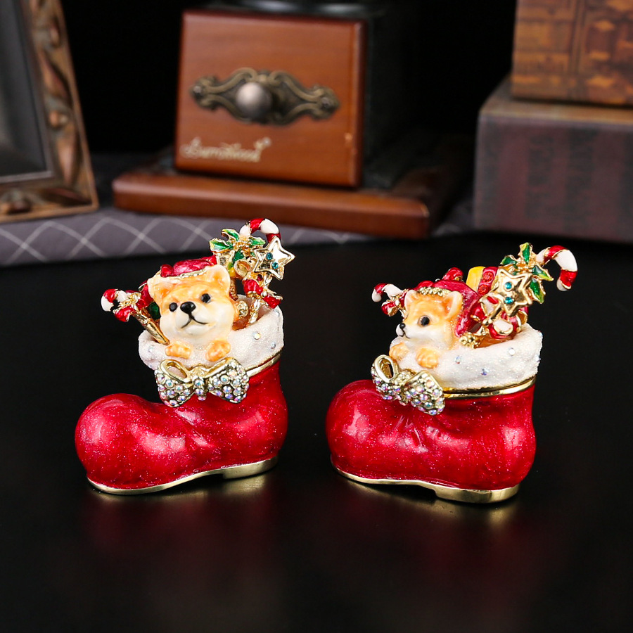 Light Luxury Cartoon Christmas Shoes Jewelry Box Small Jewelry Storage Home Decoration Flip-Top Dust-Proof Storage Box Decorative Box