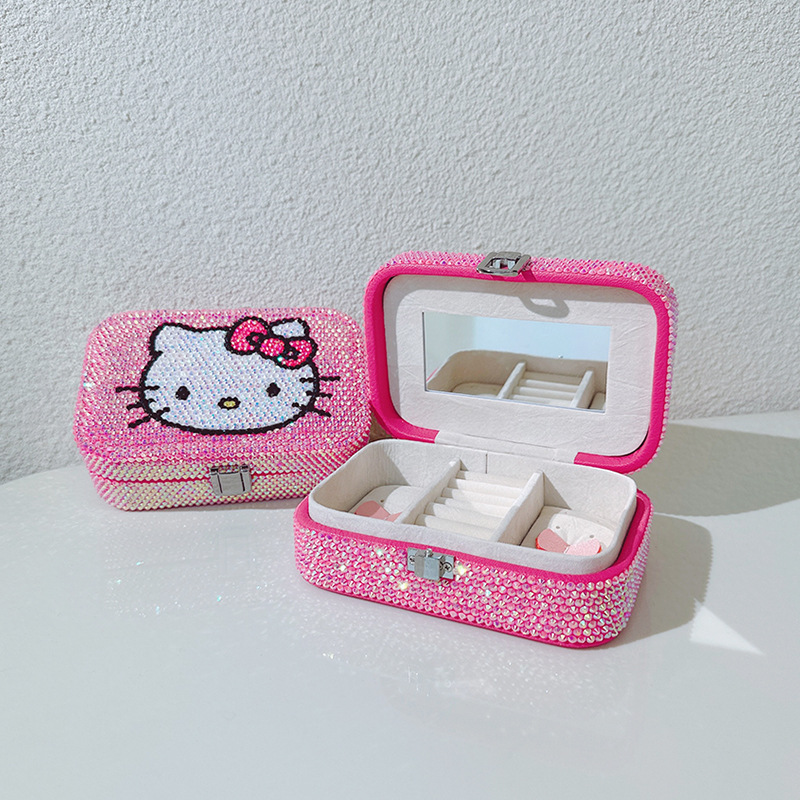 Cartoon kt jewelry box rhinestone cat cute jewelry bag stud earrings necklace storage box jewelry box whole Princess