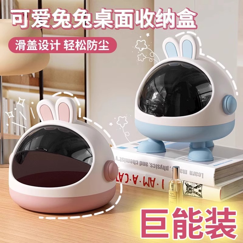 Desktop Storage Box Sundries Cosmetics Storage Box Creative Cute Flip Rabbit Ear Desktop Ornaments Storage Box