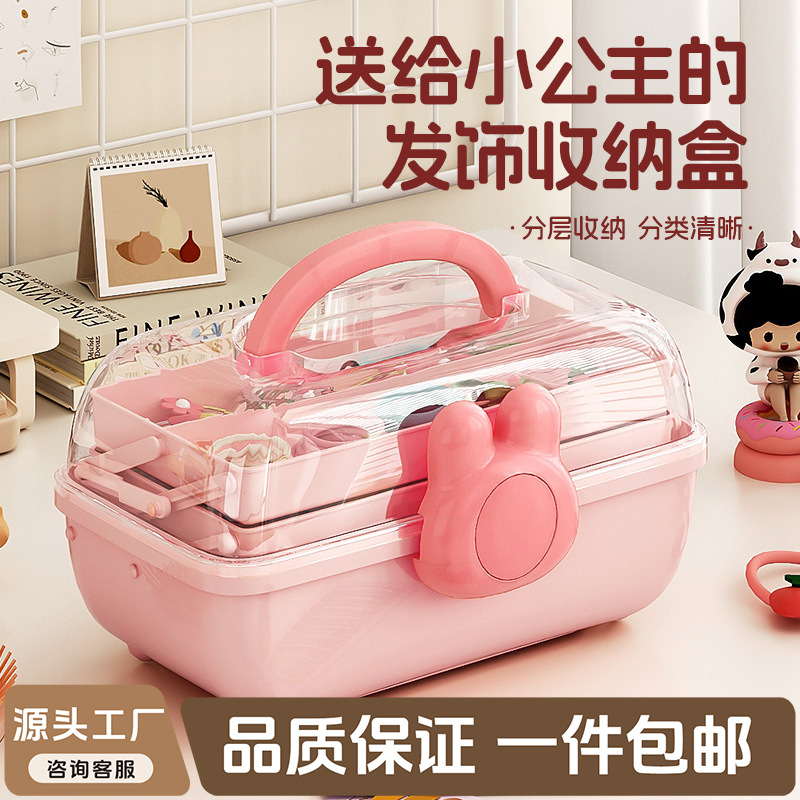 Portable storage box with lid compartment children's hair accessories desktop plastic jewelry transparent double creative cute storage box