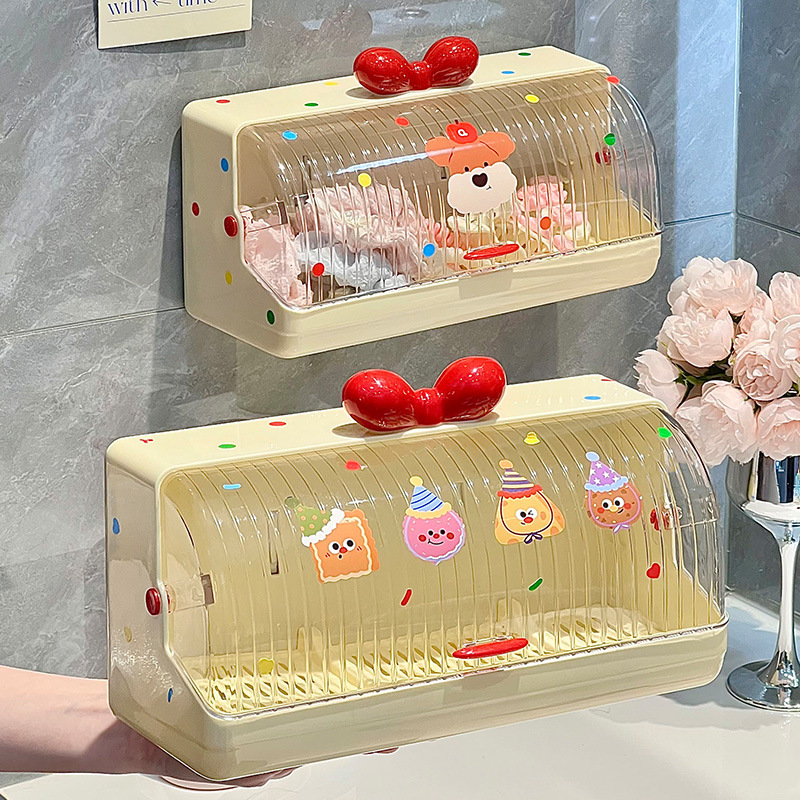 Cream Style Cute Drain Rack Cosmetics Hair Accessories Storage Box Wall-Mounted Bathroom Storage Box with Lid
