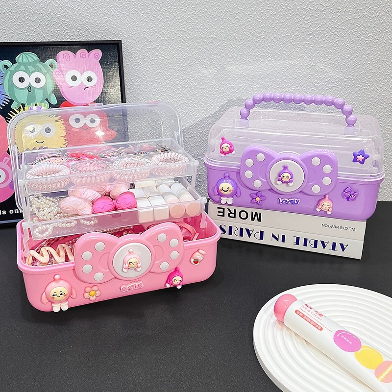 Children's Hair Accessories Storage Box Little Girl Rubber Band Hairpin Hair Band Hair Accessories Cute Multi-Layer Storage Box Jewelry Box