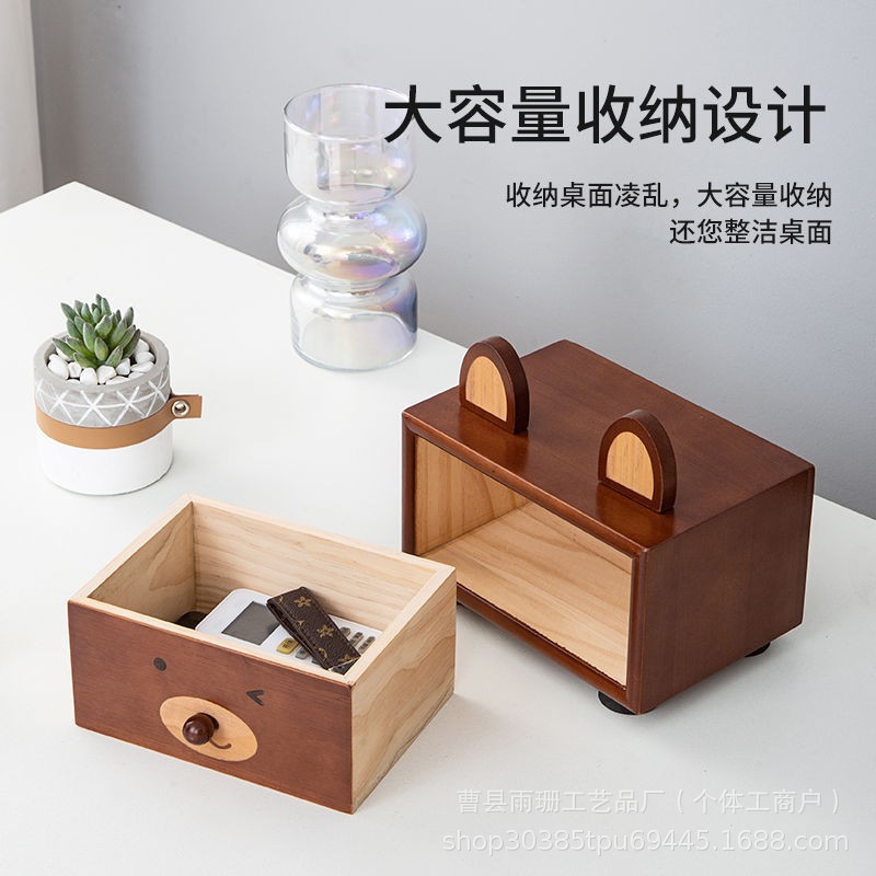 Ins Style Solid Wood Creative Storage Box Drawer Type Desktop Jewelry Cosmetics Storage Box Gift Cute Bear