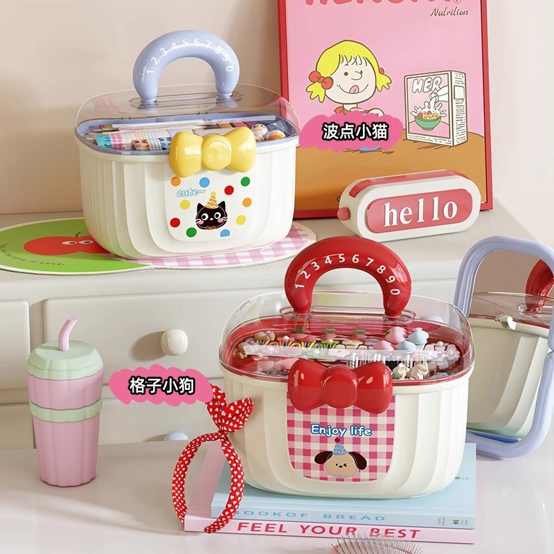 Cute Pill Box Hair Accessories Box Kidsren's Cartoon Double-Layered Large-Capacity Hairpin Jewelry Suitcase with Divider Gift Box