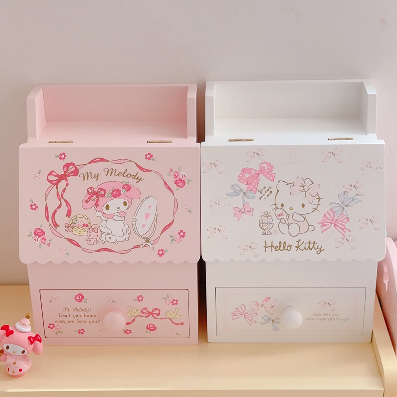 Melody Gemini Wooden Jewelry Box Desktop Storage Cabinet Girly Heart Cute Cartoon Makeup Display Stand with Mirror