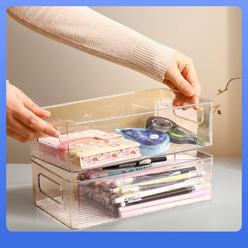 ✅ Desktop Transparent Storage Box Book Box Cosmetics Jewelry Organizer Plastic Box Cute Student Pet Storage Basket