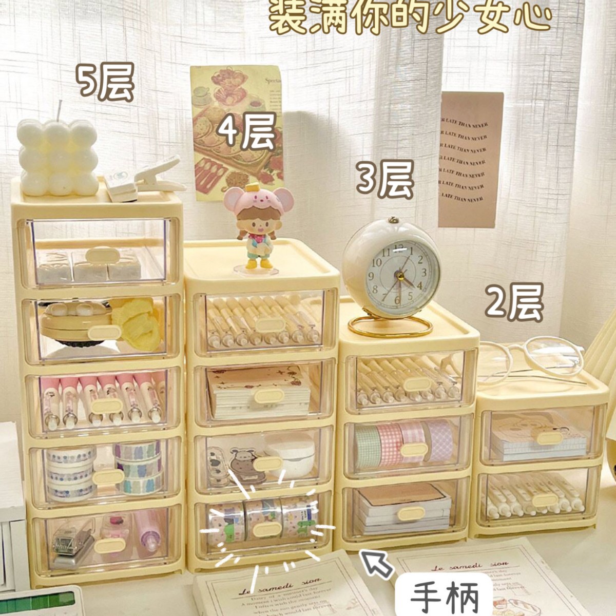 Jewelry Storage Box Organizer Box Large Capacity Cute Stationery Kidsren's Desktop Storage Box Drawer Type Girly Girl
