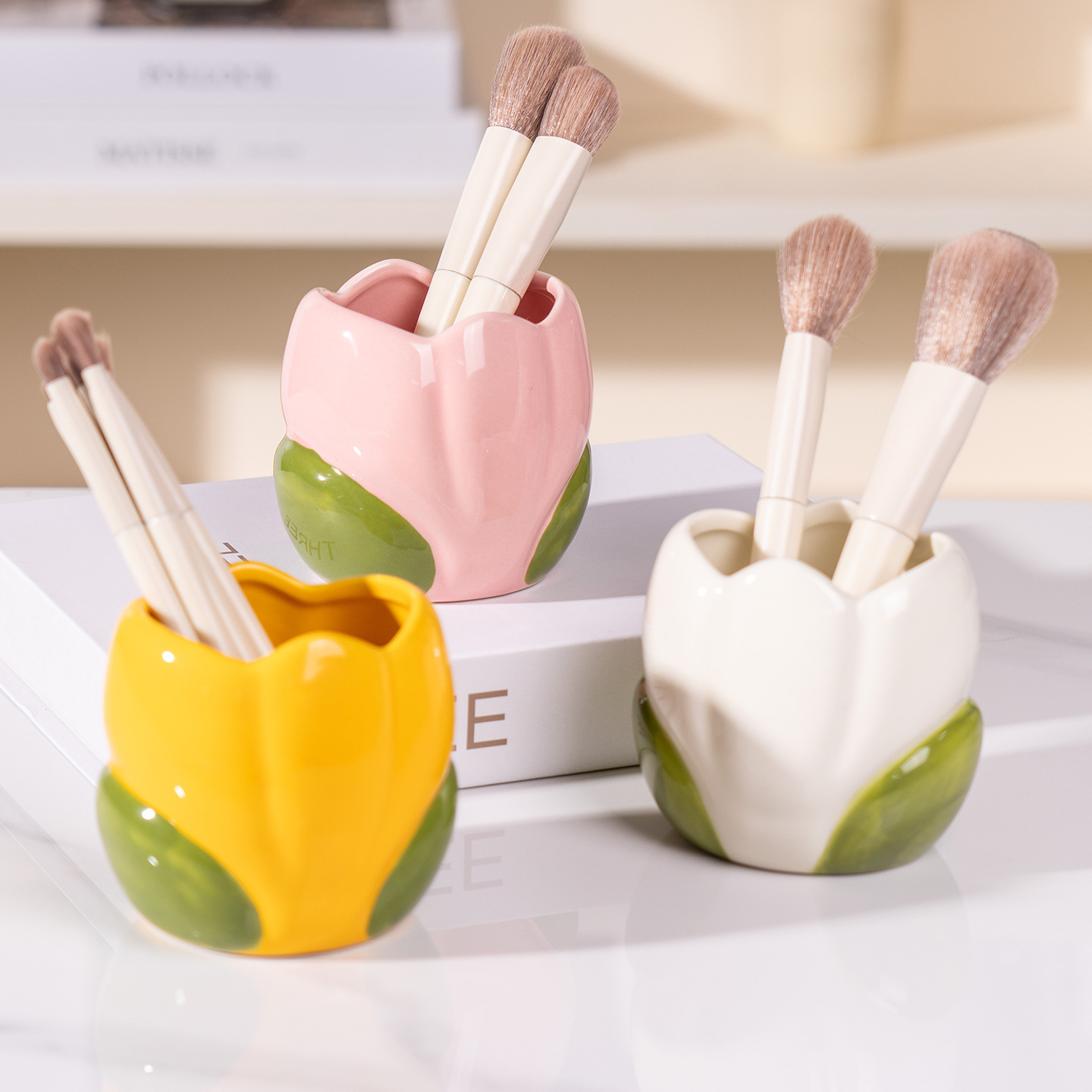 Tulip Makeup Brush Storage Bucket Desktop Comb Storage Box Cute Pen Holder High-Looking Ins Style Office Creativity