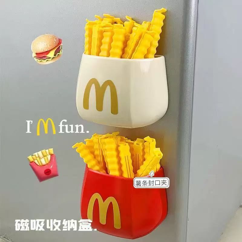 Madadang Magnetic Absorption Storage Box Household Refrigerator Multi-function Storage Sticker Cute French Fries Sealing Clip Ornaments Pen Cartridge
