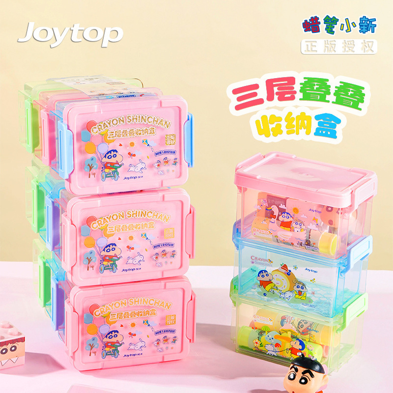 Crayon Shin-Chan Genuine Storage Box Three-Layer Stacking Box Japanese Style Cute Stationery Box Transparent Buckle Desktop Storage Box