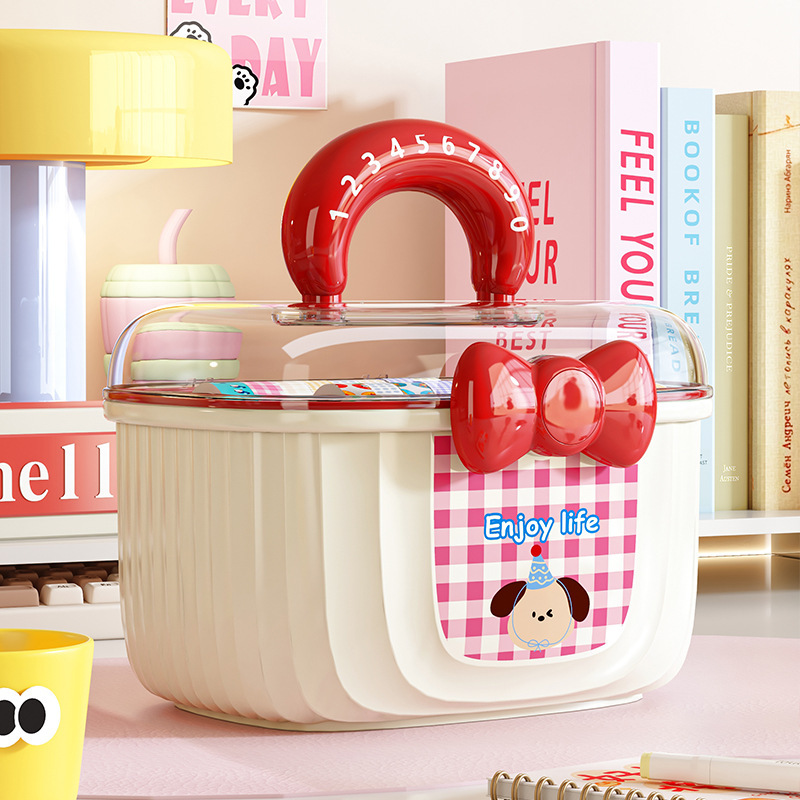 Bow Storage Box for Kidsren, Cartoon Cute Satchel Double-Layer Large-Capacity Creative Box with Lid and Compartments for Souvenirs