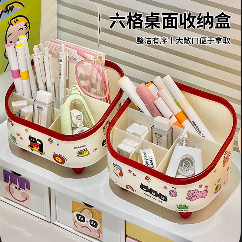 Large-Capacity Pen Holder Beveled 6-Compartment Storage Box Creative and Cute Office High and Low Partition Stepped Storage Pen Holder