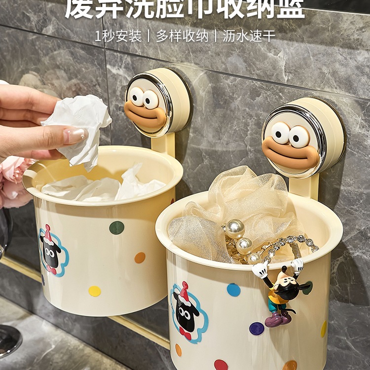 Cute Suction Cup Discarded Face Towel Storage Box Wall-Mounted Bathroom Sink Face Towel Storage Rack Storage Bucket