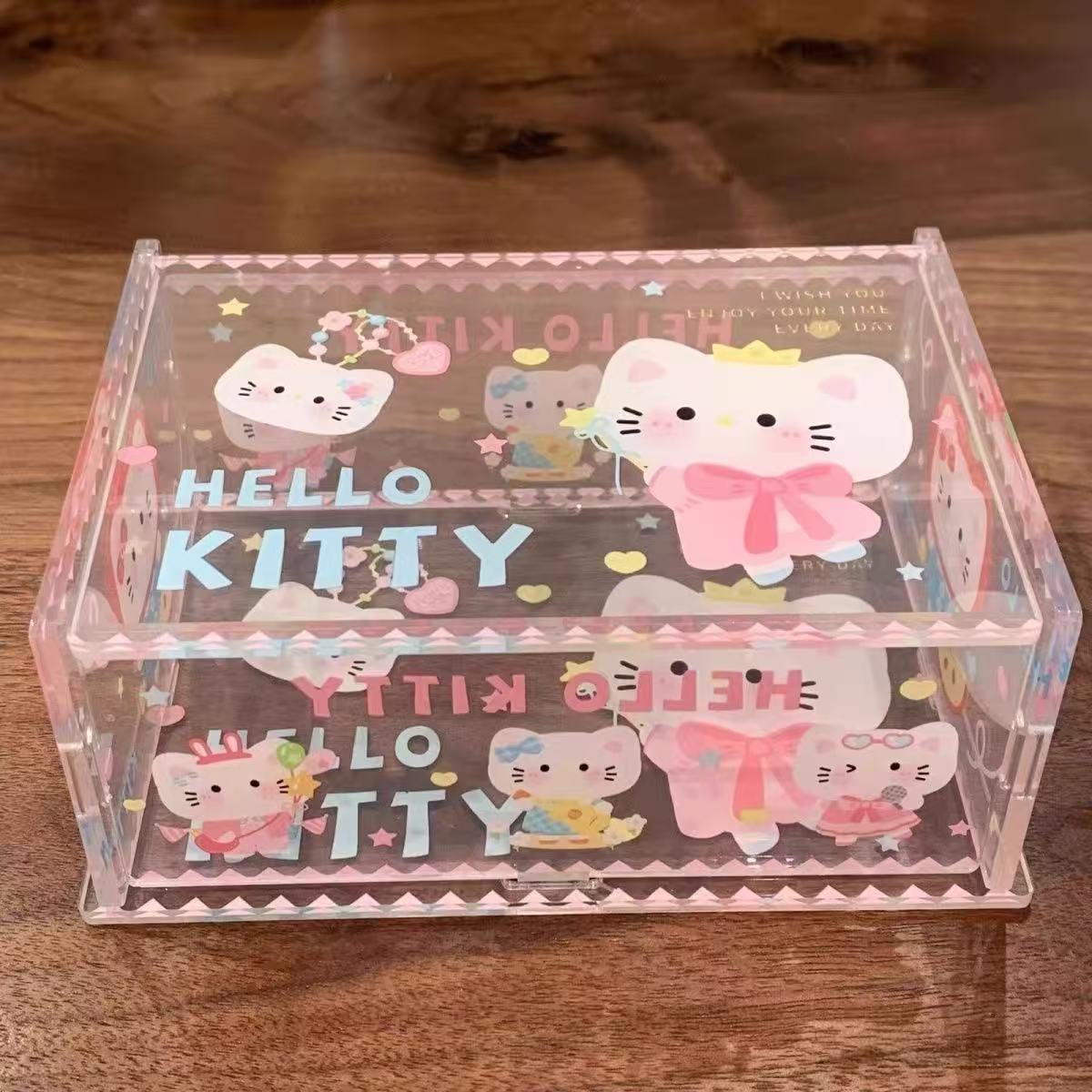 Little Red Book Hellokitty Storage Box Cute Acrylic Flip Desktop Storage Box Dustproof Ornament Removable