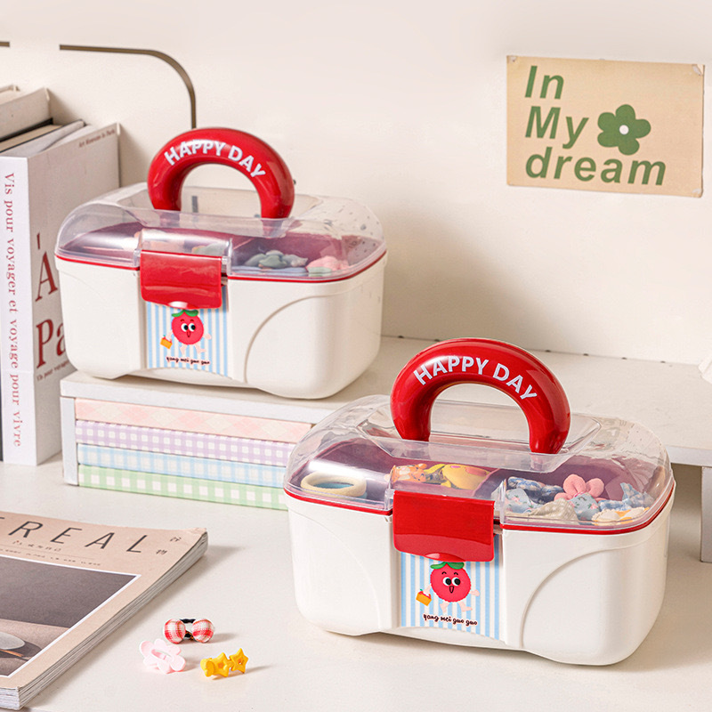 Children's Hair Accessories Storage Box Desktop Rubber Band Hairpin Clip Baby Cute Headwear Storage Box with Handle